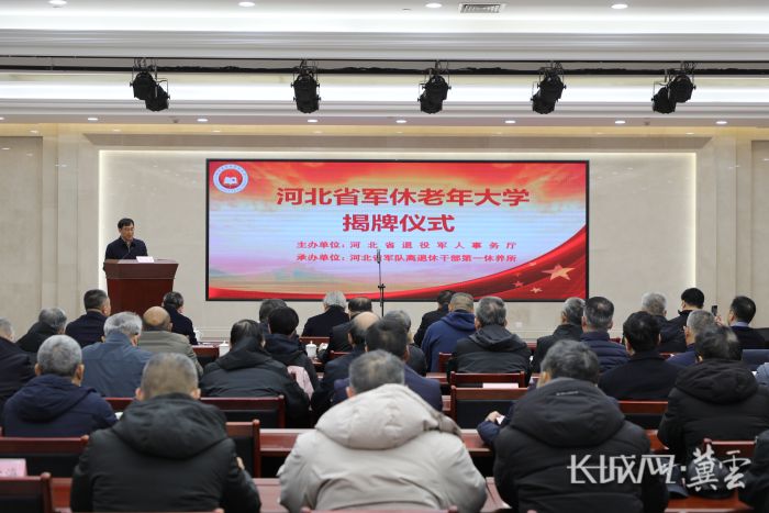 11月27日,河北省军休老年大学揭牌仪式在省军队离退休干部第一休养所举行。省退役军人事务厅、省书协负责人,河北开放大学、河北师范大学、河北传媒学院、石家庄市老年大学等合作单位负责同志参加活动。