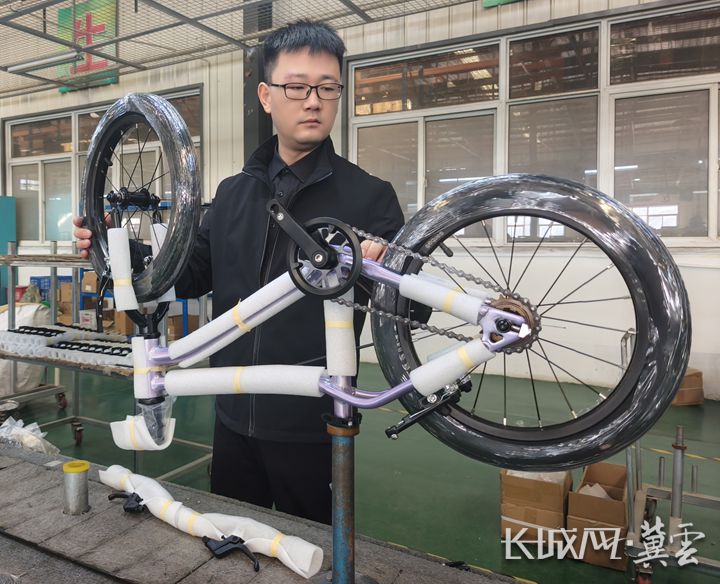 在萌兽自行车(河北)有限公司生产车间,首席质量官周旺正在检查产品质量。长城网·冀云客户端记者 刘延丽 摄
